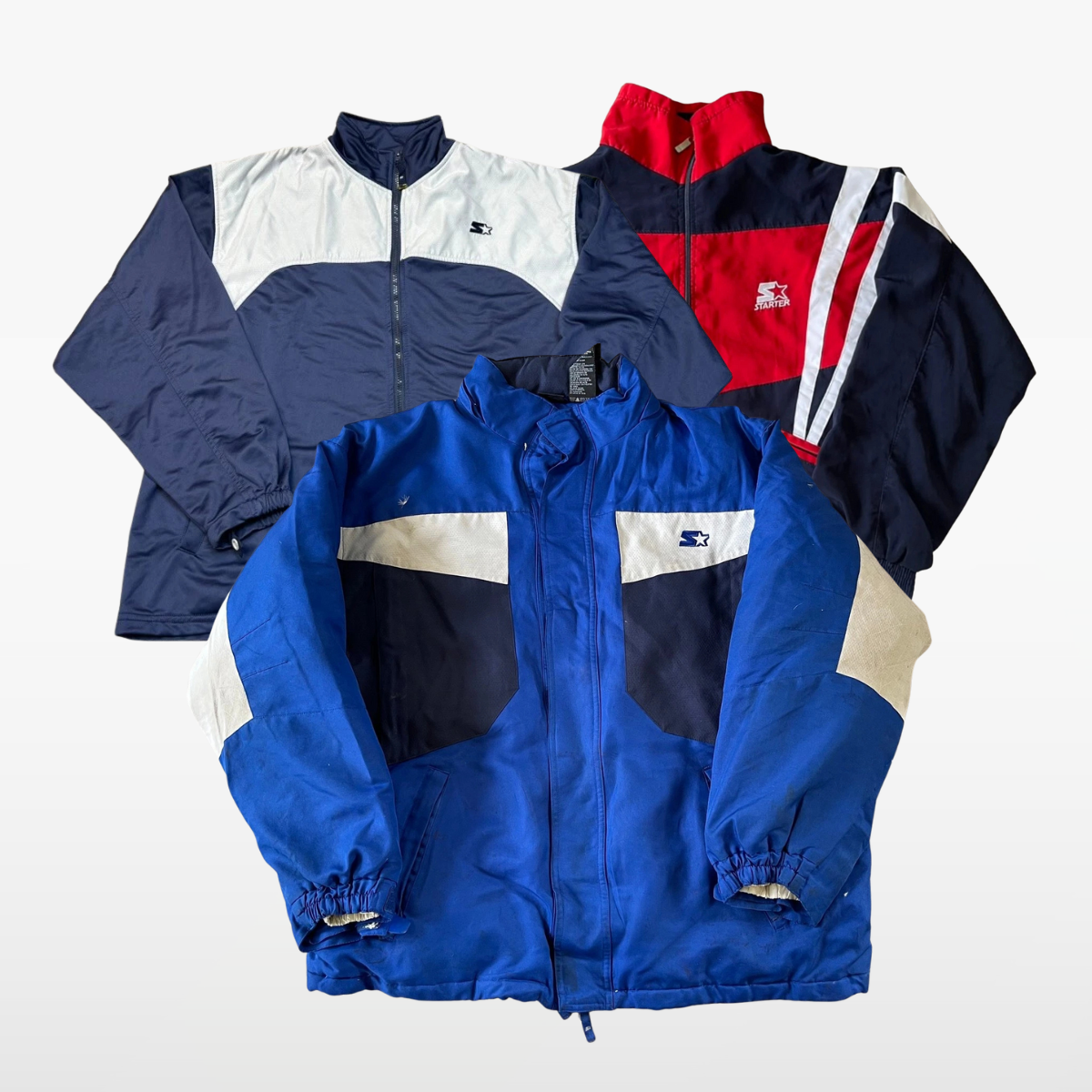 Starter Jackets ā 15āPiece Wholesale Bundle: A curated GradeāÆA/B mix of 15 authentic Starter Jackets āperfect for Autumn / Winter. Ideal for Depop, eBay, Vinted, and streamer resellers. Mixed menās and womenās sizing. Grade includes - Track and Heavy Jackets.